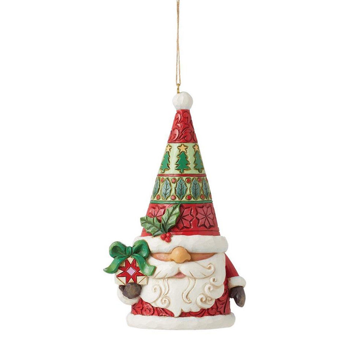 Gnomo Babbo Natale. Statuina realizzata in resina dipinta a mano effetto legno, creata dall'artista Jim Shore per la collezione Heartwood Creek.