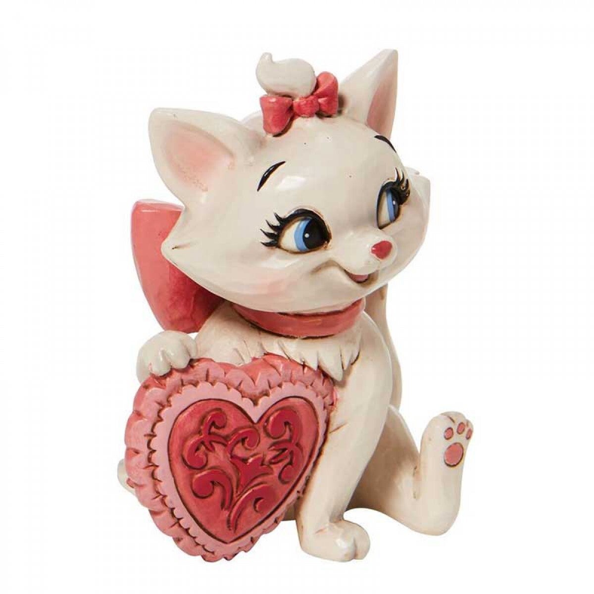 La dolcissima gattina Marie con cuore. Statuina realizzata in resina dipinta a mano effetto legno, collezione Disney Traditions, ideata dall'artista americano Jim Shore.