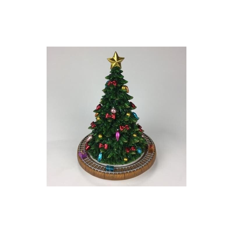 Albero di Natale con treno. Il treno gira intorno all'albero, mentre la melodia ""O Albero"" suona.
