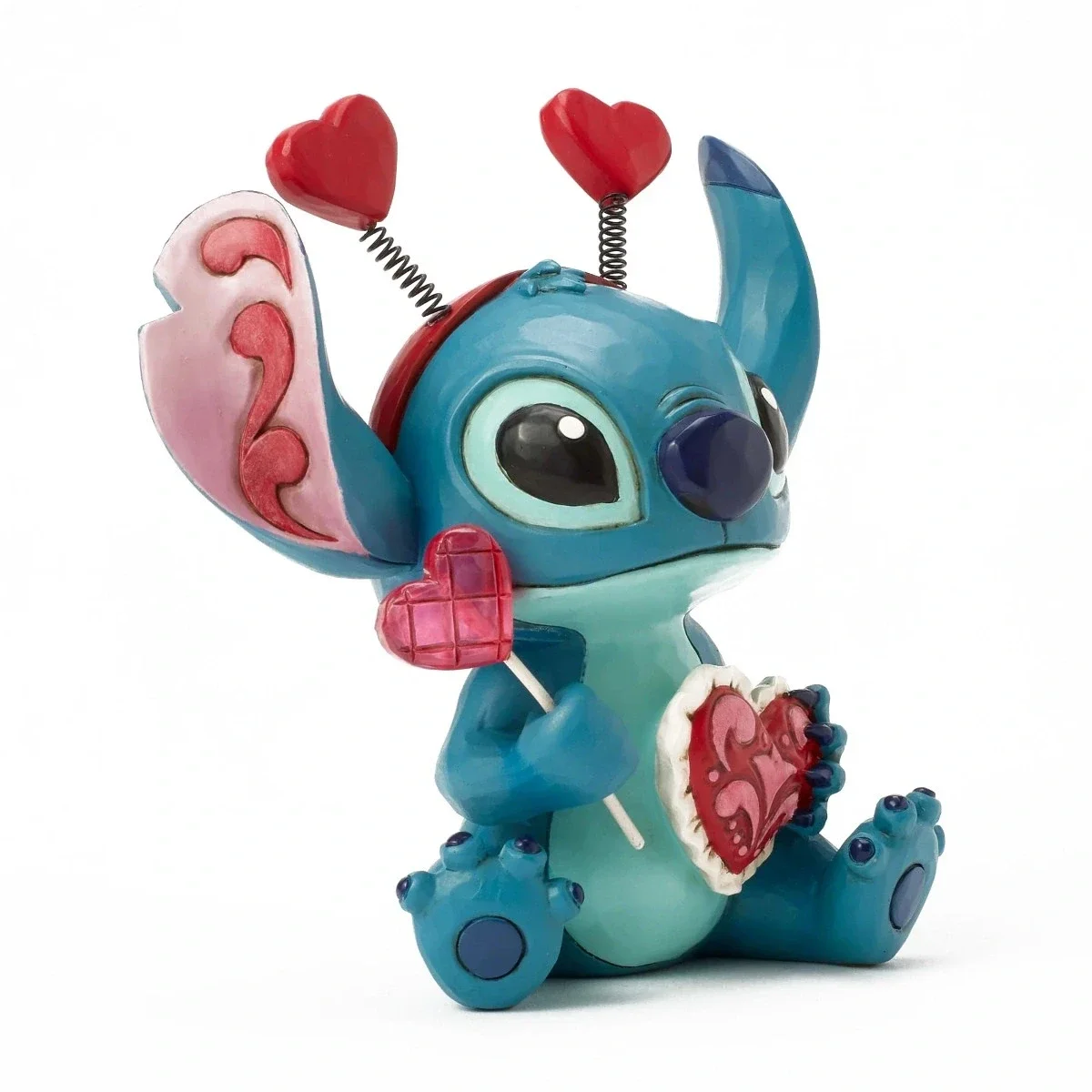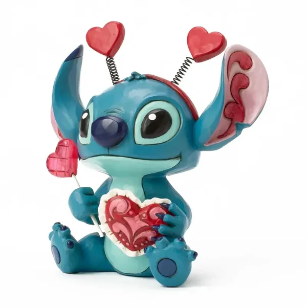 Statuetta di Stitch con Cuori, realizzata in resina dipinta a mano, effetto legno. Creata dall'artista Jim Shore per la collezione Disney Traditions.