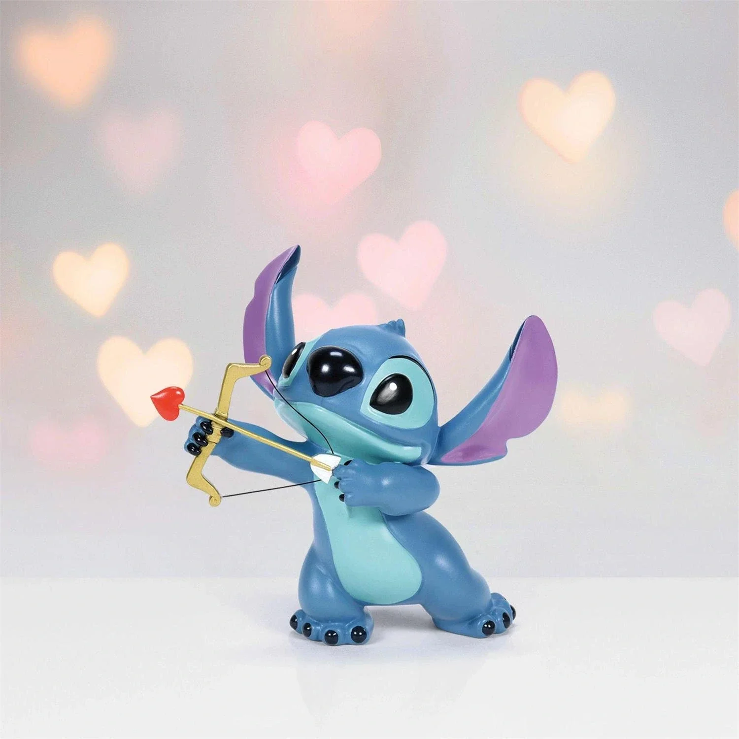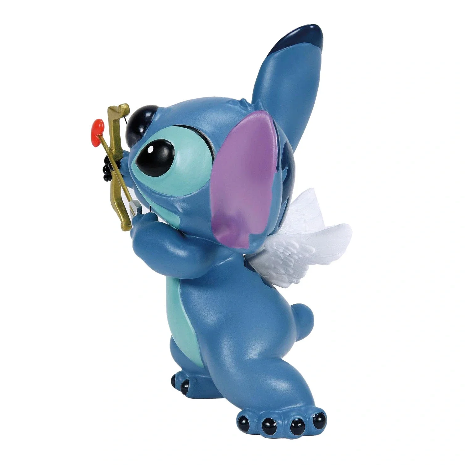 Stitch con freccia Cupido. Statuina realizzata in resina dipinta a mano effetto legno. Collezione Showcase di Walt Disney.