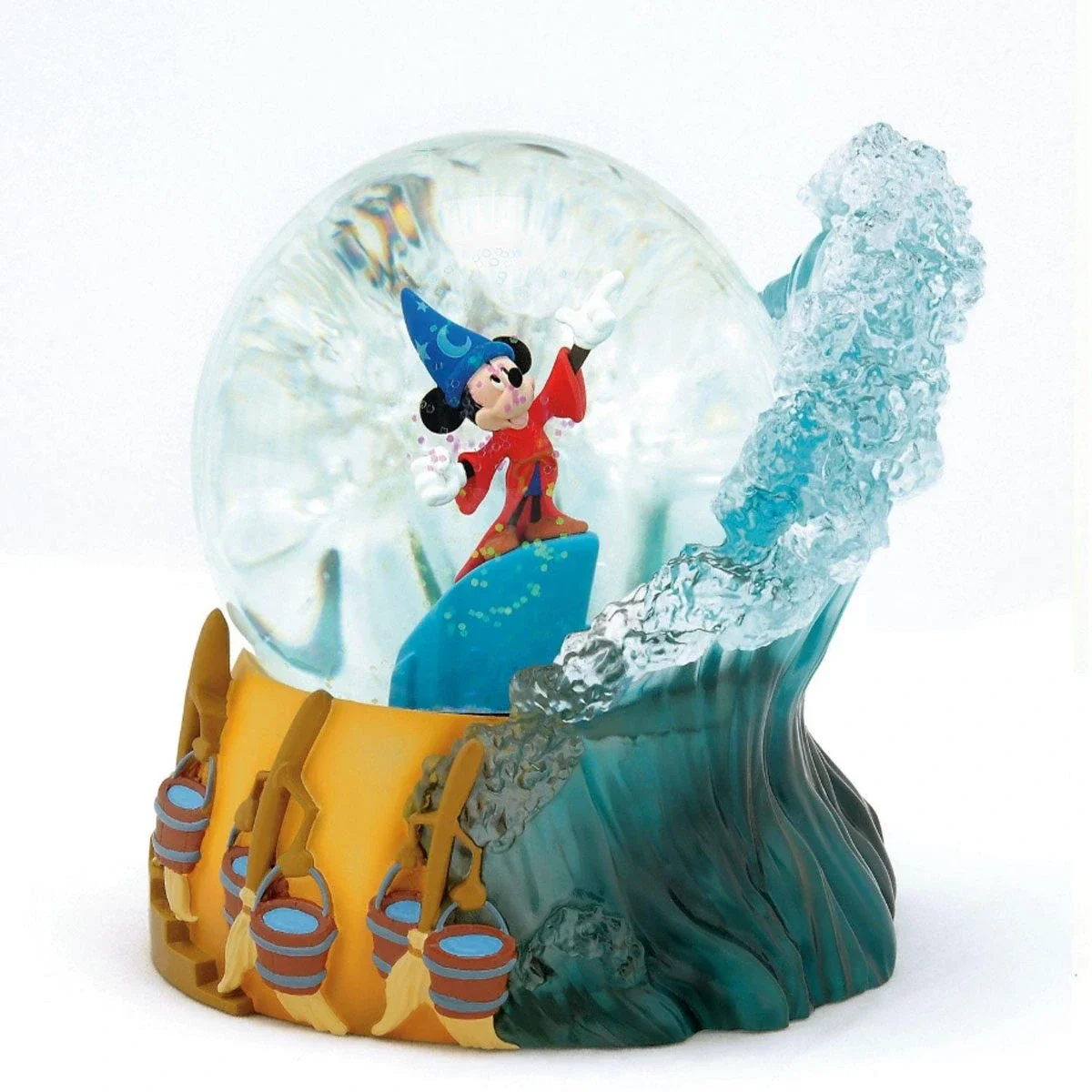 Globo d'acqua da 100 mm raffigurante l'apprendista stregone Topolino, statuina realizzata in resina dipinta a mano. Collezione Disney, linea Showcase.