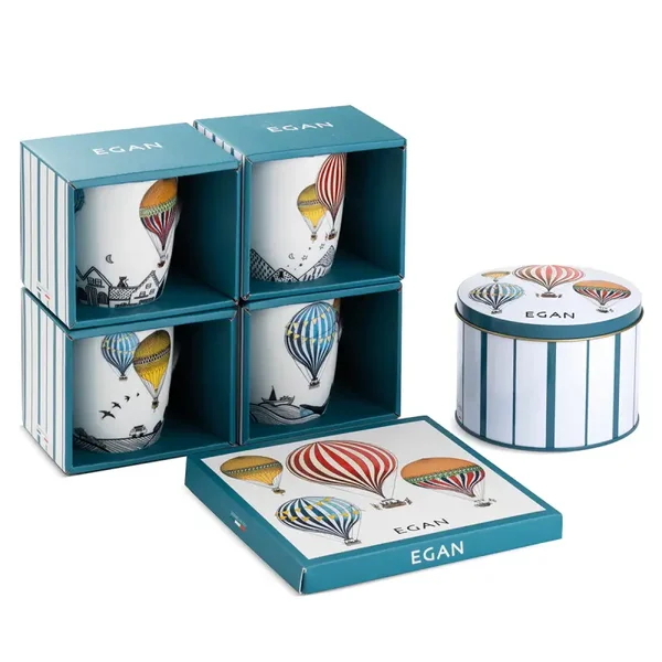 Il Set 2 Tazze Caffè Giramondo Bianco Egan unisce eleganza e immaginazione in un design essenziale e senza tempo. Il fondo bianco valorizza le illustrazioni delle mongolfiere, creando un equilibrio perfetto tra sobrietà e poesia. Un set regalo elegante e versatile, pensato per chi apprezza il design contemporaneo e la qualità firmata Egan.
